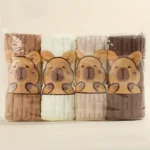 Lot de 4 serviettes microfibres capybara ultra douces et absorbantes. Séchage rapide, format pratique et design kawaii pour la maison.
