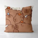 Taie d’oreiller capybara décorative en polyester doux, illustration gourmande et chaleureuse, idéale pour une ambiance cosy.